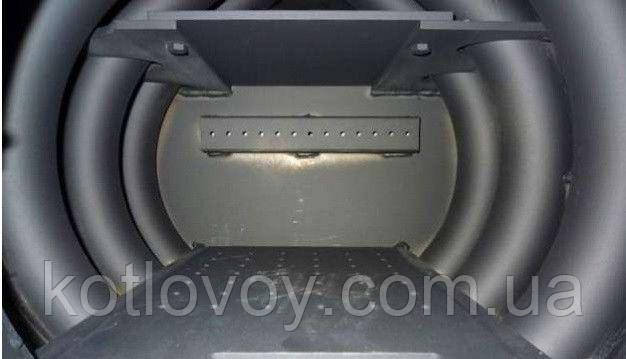 Перегородка, що розділяє нижню та верхню камери, сприяє також досягненню оптимальної температури верхніх кінців теплообмінних труб. Така конструкція топки дає змогу максимально використовувати теплову енергію палива. На завантажувальних дверцятах розміщений регулятор потужності, за допомогою якого можна регулювати інтенсивність спалювання палива. Режим допалювання печених газів, що виділяються з палива, встановлюється регулятором-газифікатором і підбирається в кожному разі досвідченим способом.