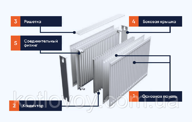 Конвектор приварений до водяних каналів, що забезпечує велике тепловіддання.