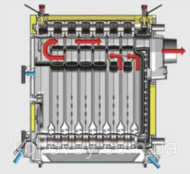 Завдяки технології гнучкого лиття чавунних деталей і ретельному обробленню досягається висока корозійна стійкість і тривалий термін експлуатації котла. Ребриста вертикальна поверхня не дає змогу виходити в трубу теплому повітрю, чим увиразнює тривалість горіння на одному завантаженні палива.
