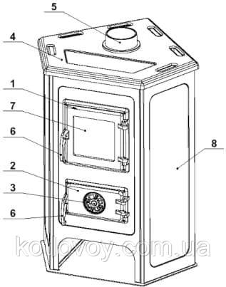 MBS Corner — це кутова піч, створена з високоякісної конструкційної сталі та чавуну. Для надання їй привабливого зовнішнього вигляду, дверцята топки, попільник, лосінець і верхня кришка виготовлені з чавуну та покриті матовою термостійкою фарбою. Сталеві стінки печі покриті високоякісною емаллю, яка надає їй елегантного вигляду.