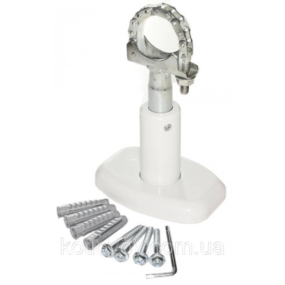 | Білий кронштейн для кріплення секційних біметалевих і алюмінієвих радіаторів до підлоги. Добре підходить для кріплення радіаторів, висота яких буває досить великою, але для них передбачені кріплення тільки до стіни, чого часто бракує через велику масу радіатора. Досить буде підставити цей кронштейн під радіатор, щоб той спирався на нього, а бічними настінними кріпленнями закріпитися до стіни. Часто використовується у квартирах із панорамними вікнами. |